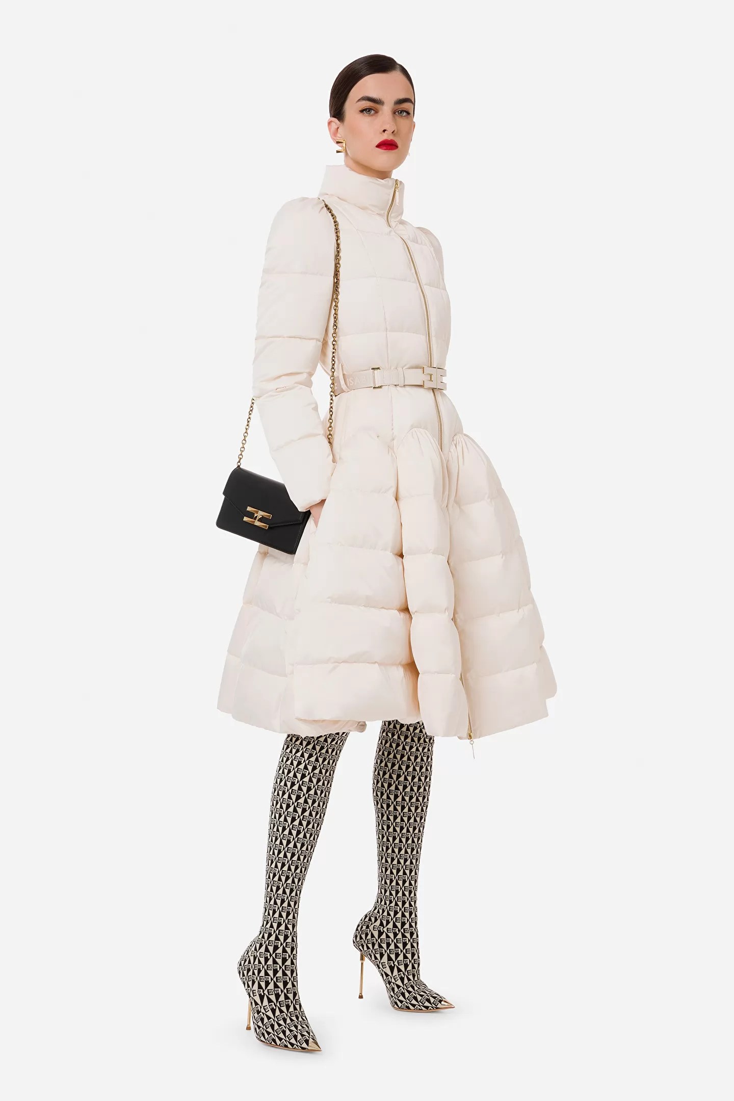 ELISABETTA FRANCHI Piumino a ruota con cintura logo Quaderno a Quadretti