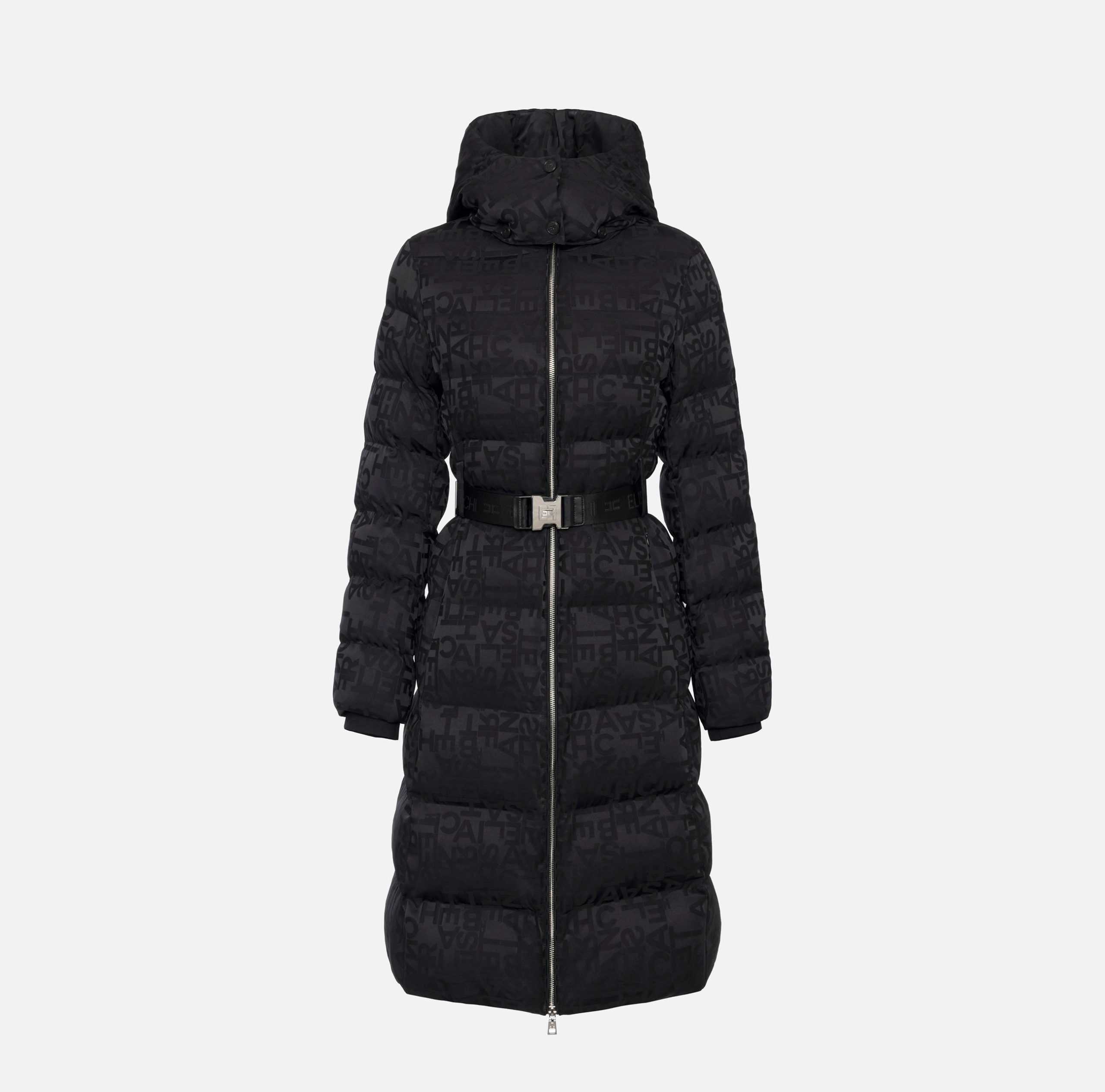Piumino lungo in nylon jacquard lettering