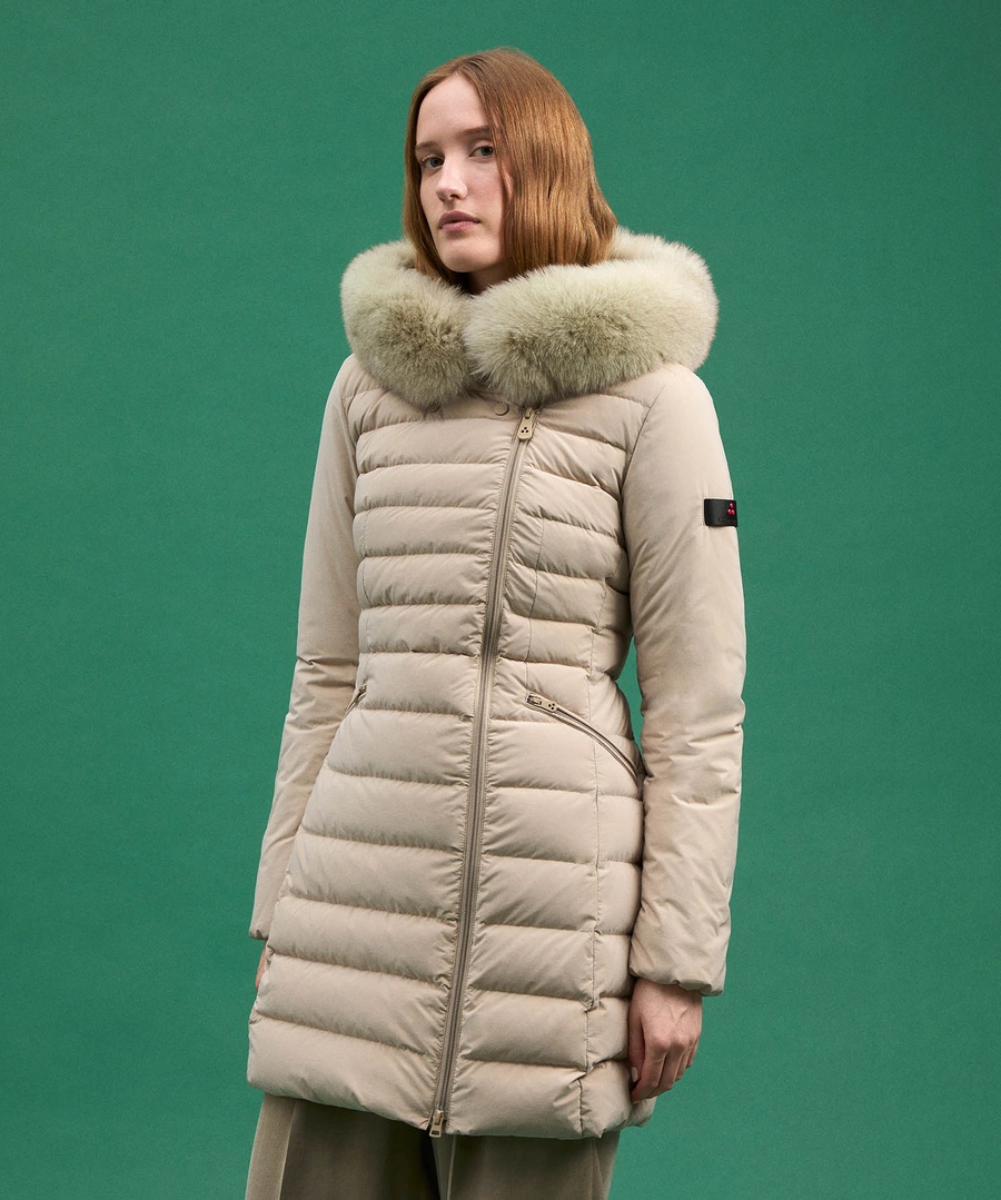 PEUTEREY giubbotto donna piuma cappuccio SERIOLA ML 04 FUR PED365701190986 215 BLU inverno 2024