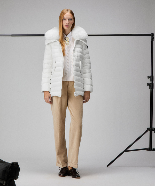 Piumino lungo con pelliccia in tono colore per donna, bianco | Peuterey