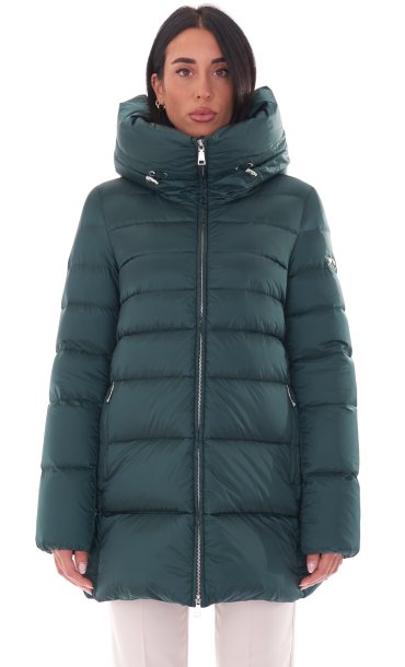 Piumino lungo svasato Add donna con collo ampio e cappuccio 8AW226