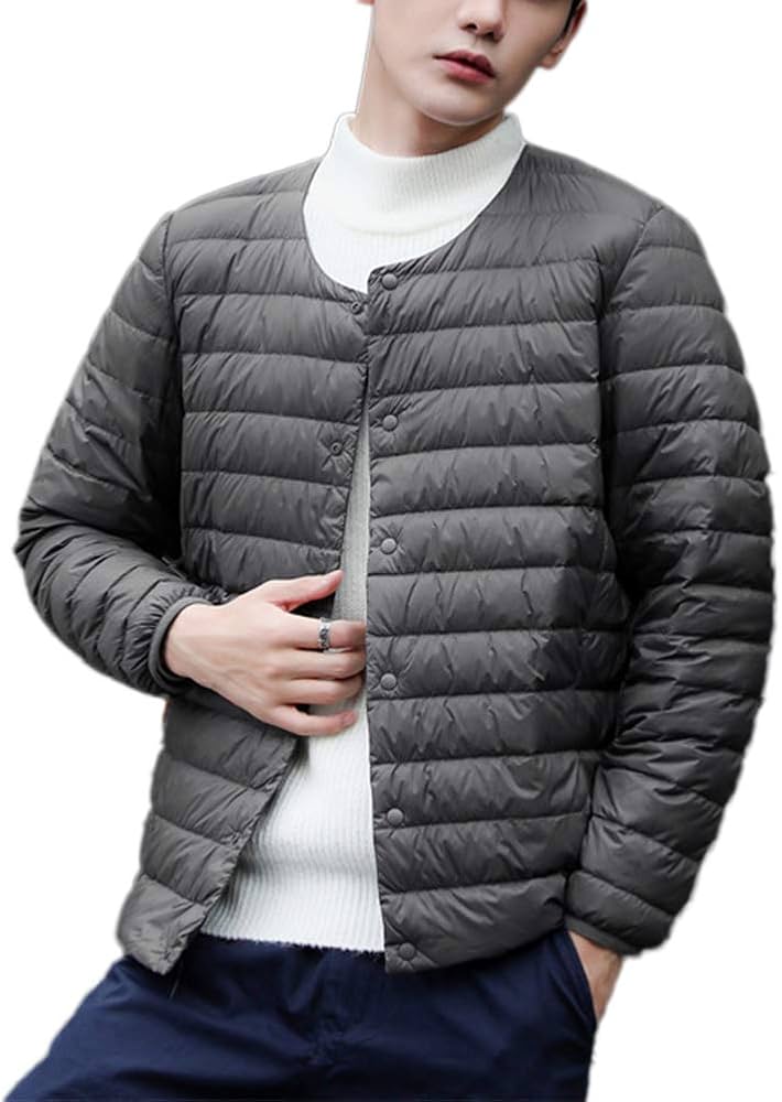 HONGBI Piumino Leggero Senza Collo a Maniche Lunghe da Uomo Ultraleggero Giacche di Piumino Corto Casual Giacca Trapuntato Giubbotto Giù Cappotto …