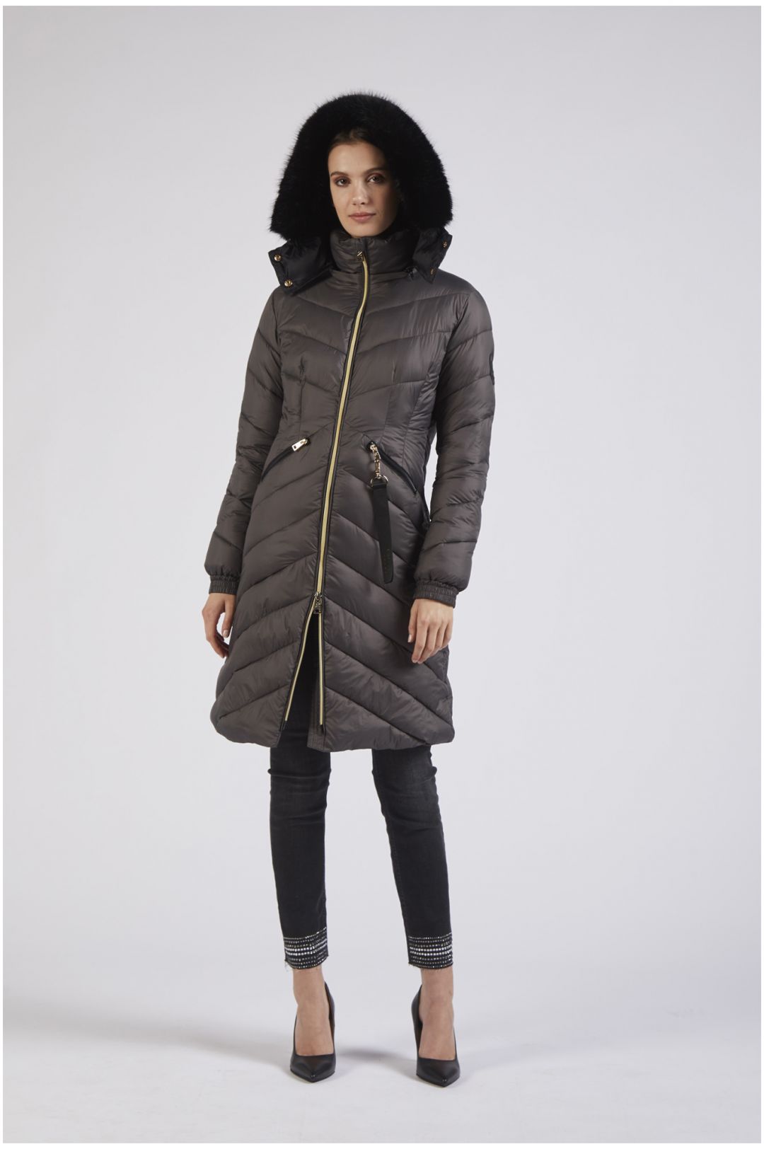 piumino avvitato con bordo al cappuccio asfalto
