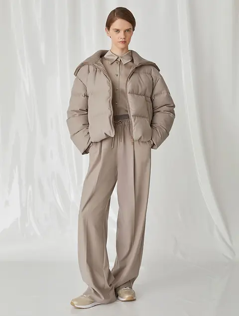 MARELLA Piumino con collo in maglia tortora T. 42 | leChicche