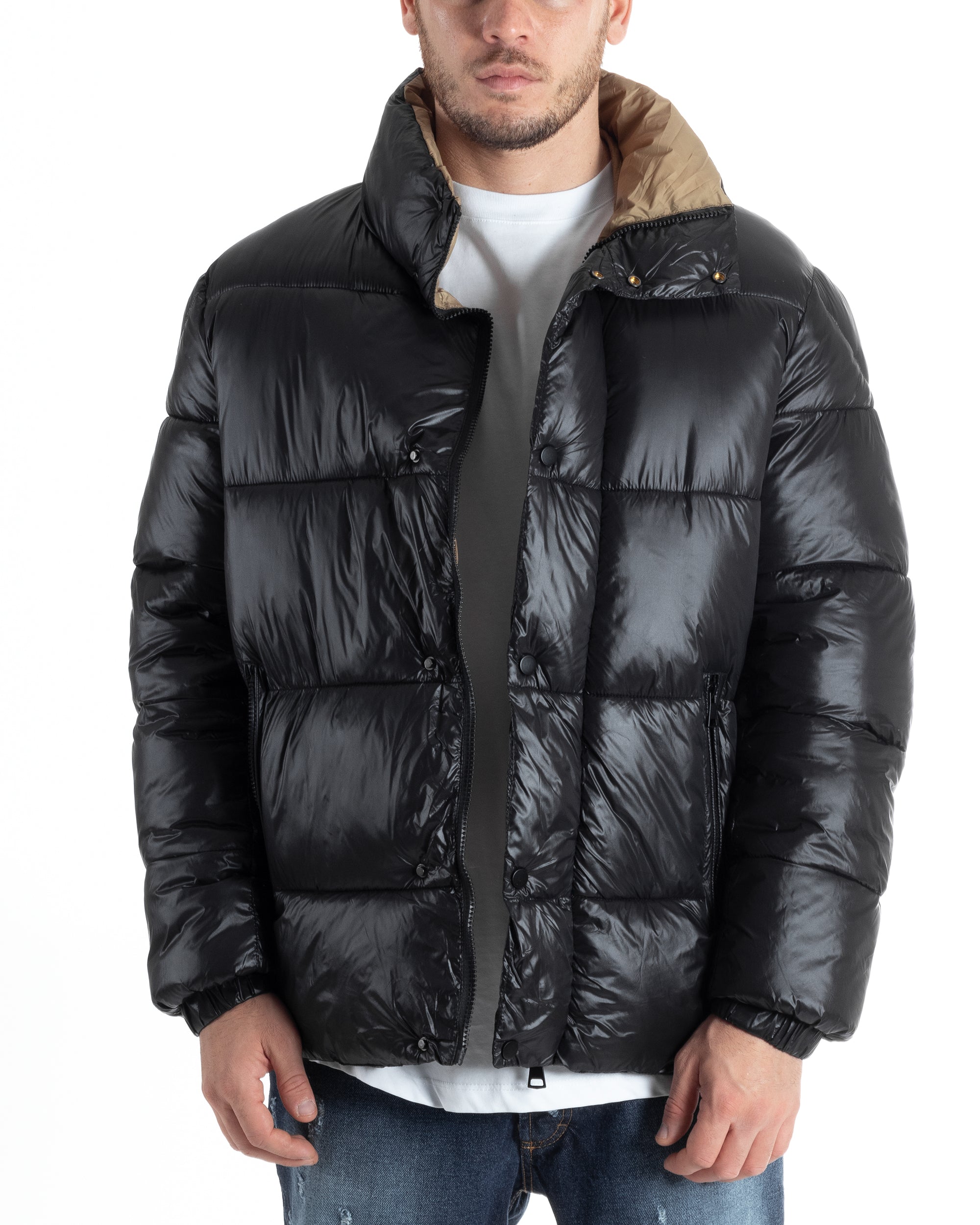 Giubbotto Uomo Piumino Tinta Unita Nero Lucido Bomber Puffer GIOSAL G3130A S