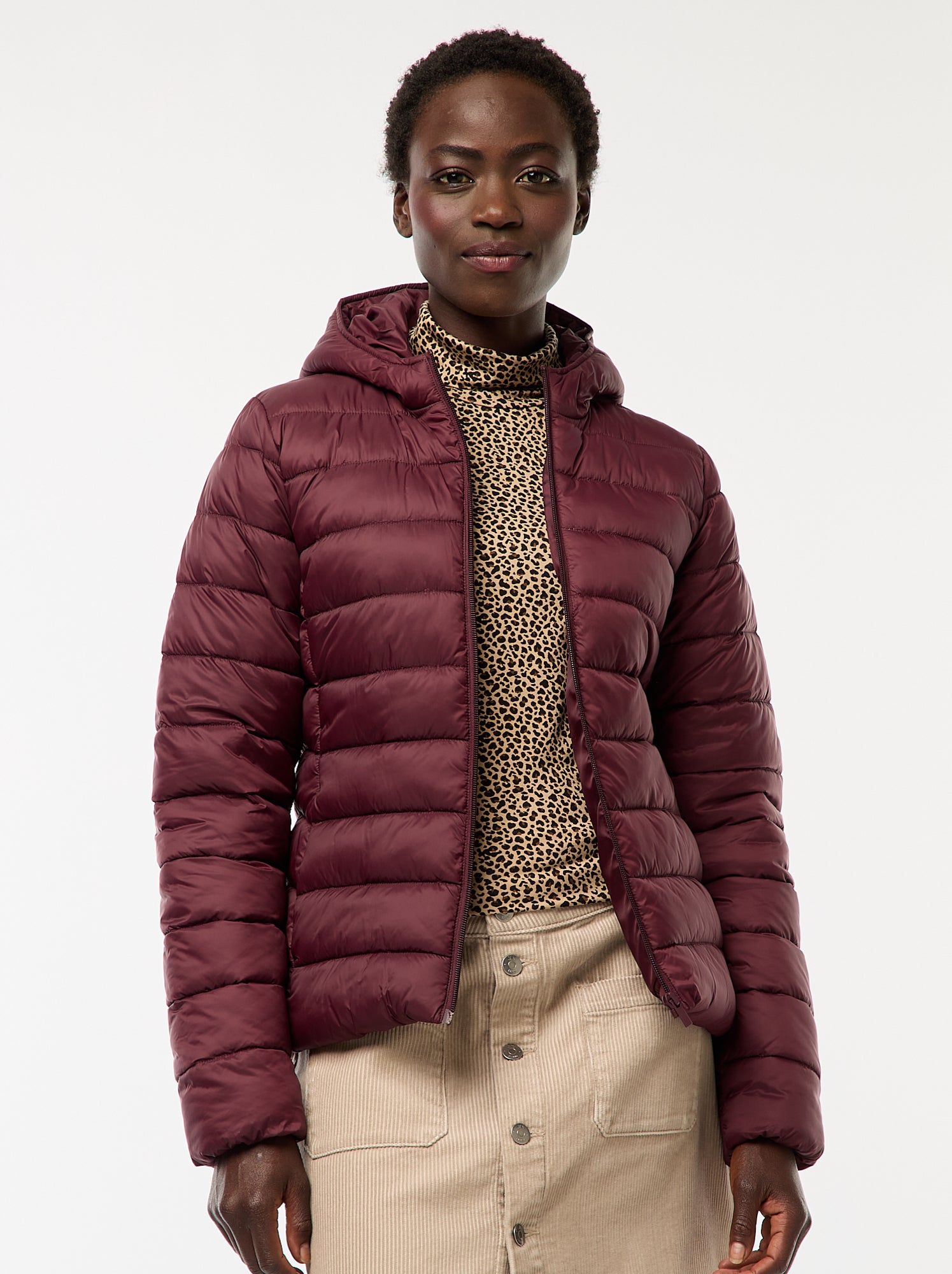 Piumino leggero con cappuccio tinta unita Rosso
