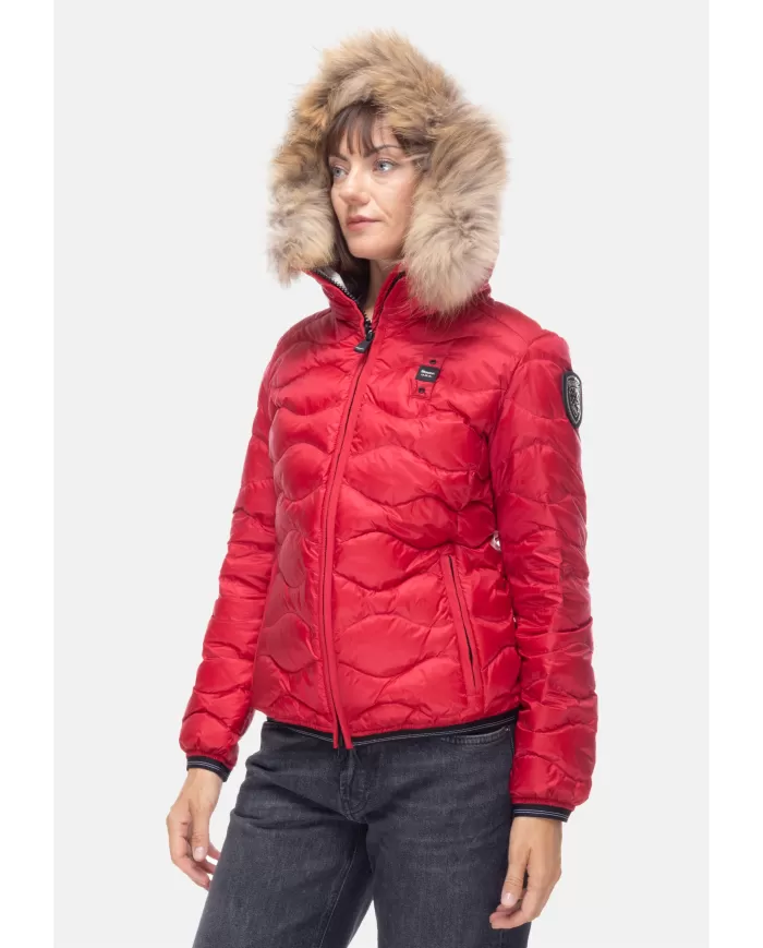 BLAUER Piumino donna con cappuccio in pelliccia Aldie Rosso