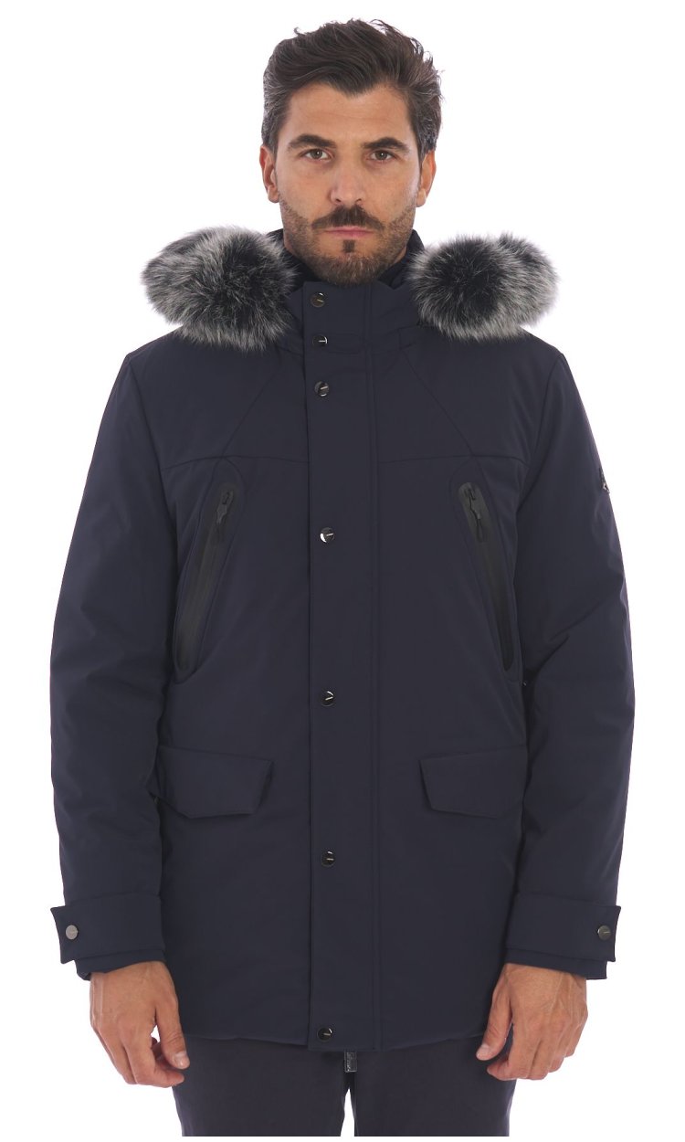 PIUMINO LUNGO HESKIMO CON CAPPUCCIO E PELLICCIA BLU