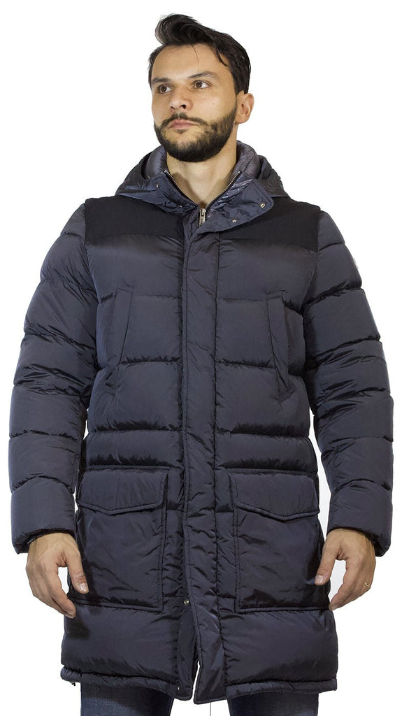 Piumino lungo uomo Add grigio imbottito di piuma d’oca con cappuccio. Boutique Luisa Trendy